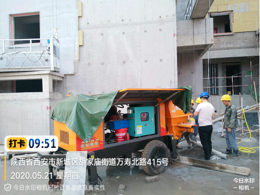 當(dāng)日下午,當(dāng)全部準(zhǔn)備工作做到位后,細(xì)石泵開(kāi)始施工作業(yè)中〉…