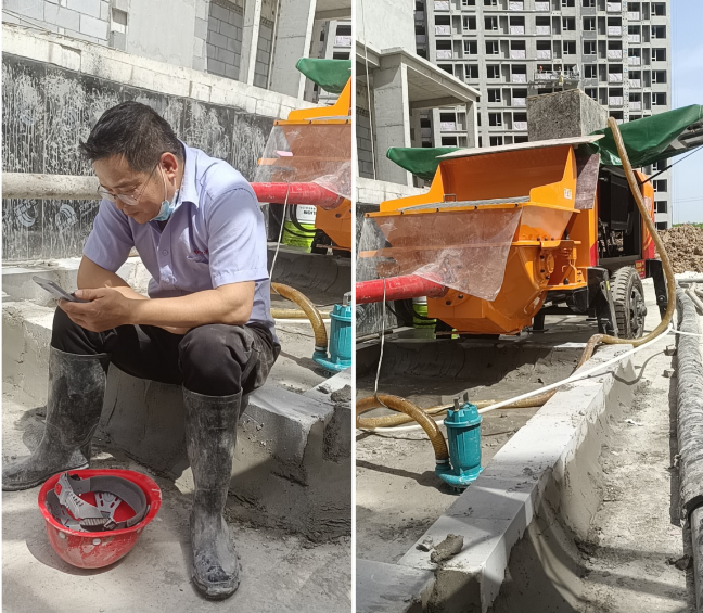 廣東廣州,工地開泵師傅在操作泵機(jī),工人都說新泵省心,忙碌的日常也會(huì)因?yàn)楣ぷ鞯谋憬荻_心